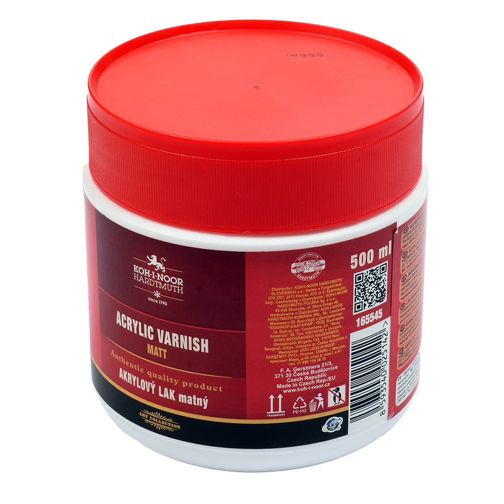 Acrylic water dispersion-based varnish. Dried coating is matt, water-resistant, non-sticking on surface, does not turn yellow. Applied by brush.