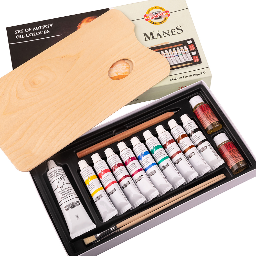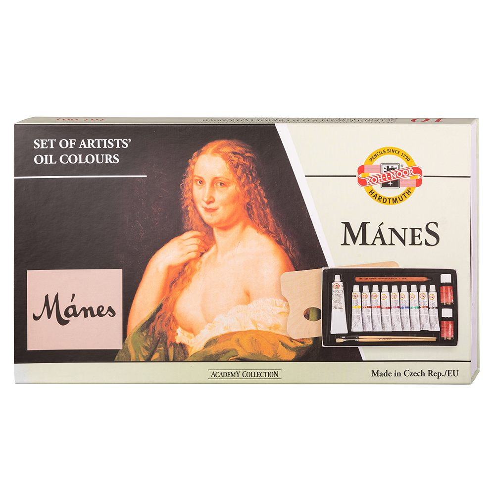 Mánes oil paint for painters is recommended as a study material for people interested in oil painting, for hobby painting, e.g. colouring of wooden figures etc. The tubes may be purchased either separately in any amount or in sets.