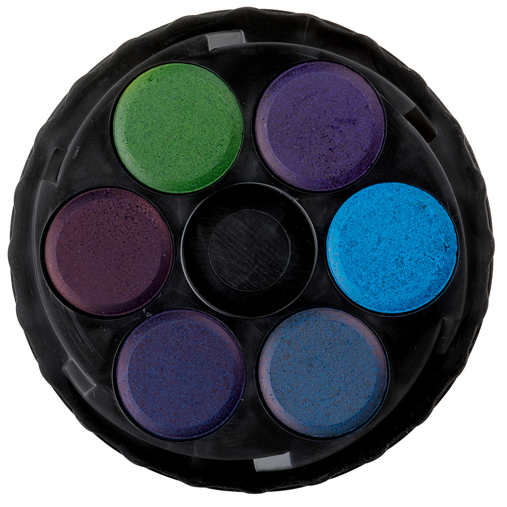 The watercolours of 22,5 mm tablet diameter with 36 brilliant colour shades suitable for special graphic techniques, e.g. colouring of photographs, painting of portraits, painting on decorations, decoration of Easter eggs, and more. Inserted in plastic colour pad with transparent lid.