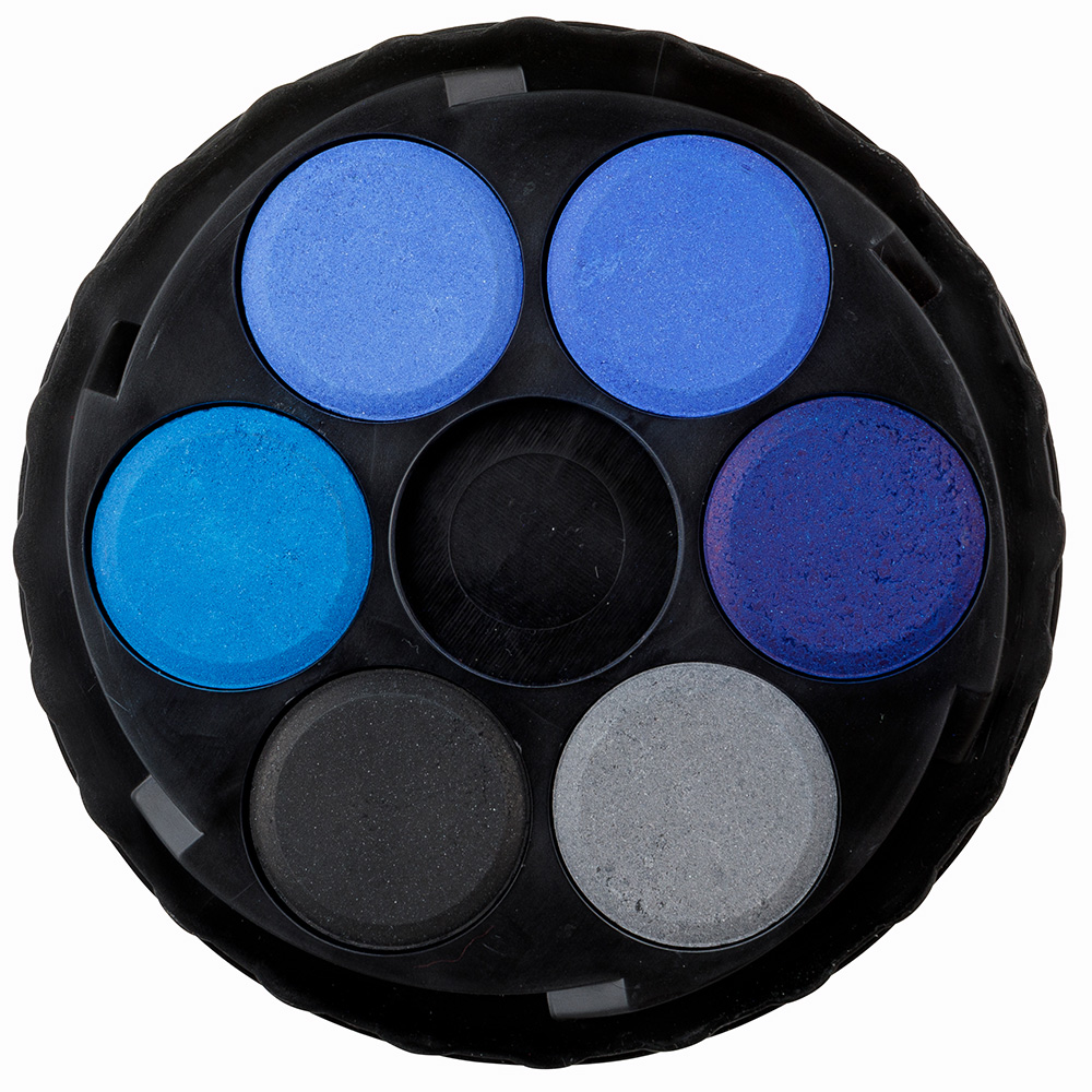 School watercolours in 6 colour shades and 22,5 mm diameter tablets in round, plastic, one-floor colour pads. The colour shades are bold and characterized with high pigment volume.