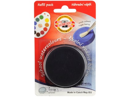 A big tablet of school watercolour, diameter 57 mm, height 15 mm, sold freely in a blister with a card and print as a refilling cartridge to the Ladybug colour tool for free use.