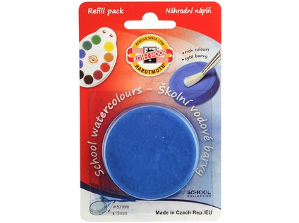 A big tablet of school watercolour, diameter 57 mm, height 15 mm, sold freely in a blister with a card and print as a refilling cartridge to the Ladybug colour tool for free use.