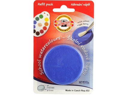 A big tablet of school watercolour, diameter 57 mm, height 15 mm, sold freely in a blister with a card and print as a refilling cartridge to the Ladybug colour tool for free use.