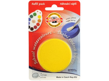 A big tablet of school watercolour, diameter 57 mm, height 15 mm, sold freely in a blister with a card and print as a refilling cartridge to the Ladybug colour tool for free use.