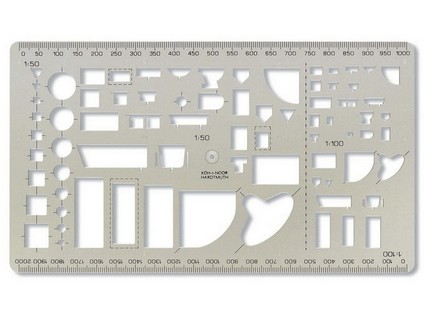 Sanitary template made from smoky transparent polystyrene. Designed for drawing of sanitary facilities. Intended for use with sharpened pencil, mechanical pencil, or technical pens. Contains inner slots shaped to schematic symbols of the sanitary facilities. The slots are divided into two parts. One slot is in the 1:50 scale and the other in the 1:100 scale. In addition, the longer sides of the template have length scales in the 1:50 and 1:100 scale printed. The prints are made using precise screen printing technology and resistant to wear and tear during normal use. Designed for schools and offices. Packed in full-transparent polypropylene casing with paper insert and EURO hanger.