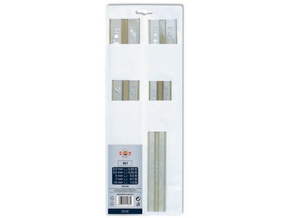 A set of technical letter templates type 901 intended for writing of vertical type faces according to ČSN using technical pens 0,25; 0,35; 0,5; 0,7; and 1,0 mm. The templates contain characters of lower case and upper case alphabet, digits, and mathematical symbols. Intended for using with technical pens. It contains the vertical letter templates of size 2,5; 3,5; 5; 7; and 10 mm. The templates are designed for schools and offices. The templates are packed in polypropylene casing with paper insert and EURO hanger.