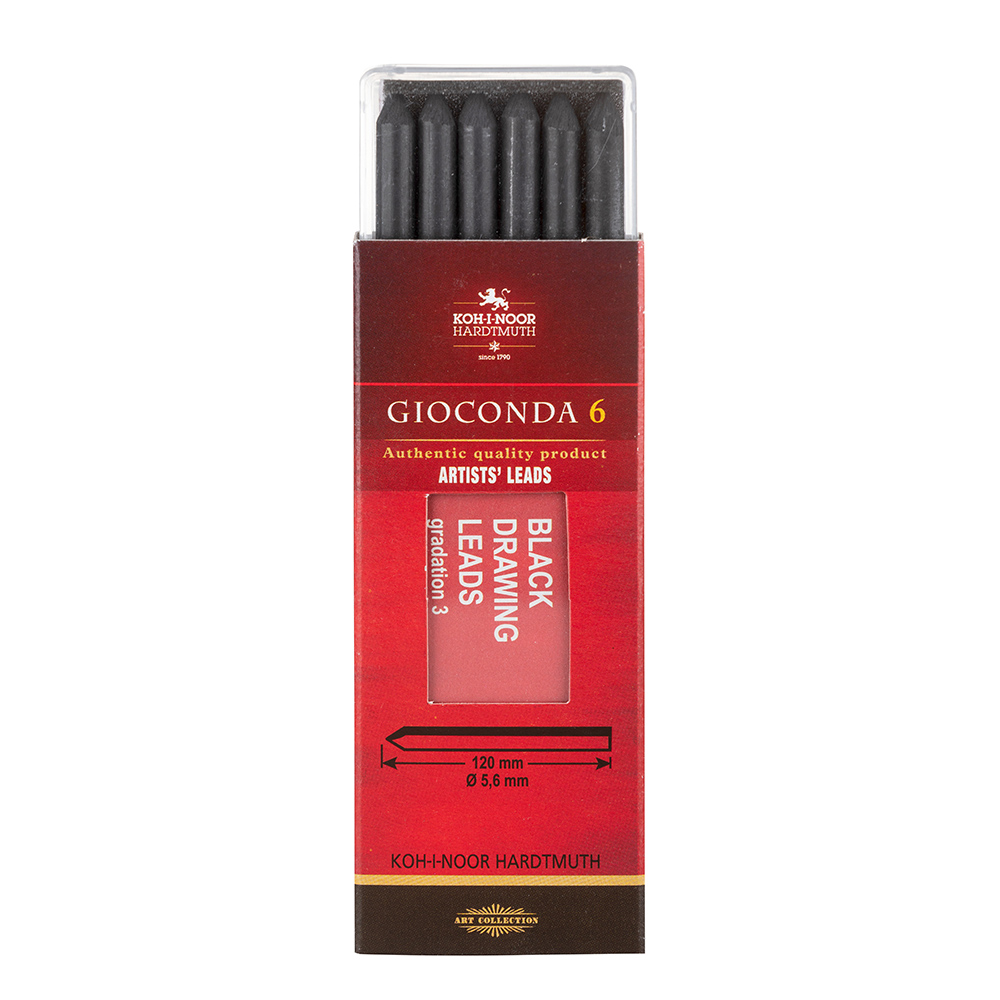 Special black lead with a diameter of 5,6 mm. These leads are produced in three hardness degrees: 1, 2, 3. It is characterized by intense black velvet mark. It is widely used for portraying as well as for other types of drawing. It is popular among artists.