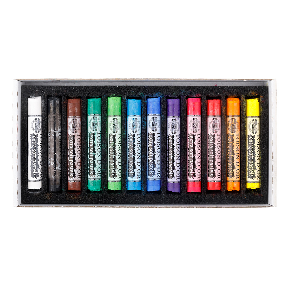 Set of 12 Extra powdery artistic pastels with a wrap, diameter of 12 mm and length of 75 mm. Pastels are suitable for artistic and hobby drawing. These pastels have high pigmentation and, therefore, light colours feature high light fastness. Once finished, we recommend to use a fixative to protect the drawing against dusting or blurring.