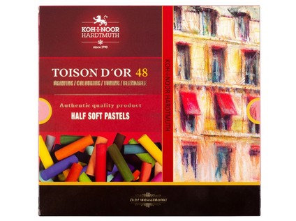 Set of 48 pcs of round unwrapped art pastels of diameter 10 mm and 37 mm long. Excellent writing properties and light stability. The pastel holder KOH-I-NOOR Versatil will come in handy when drawing. It is recommended to use fixative to stabilize completed drawings.
