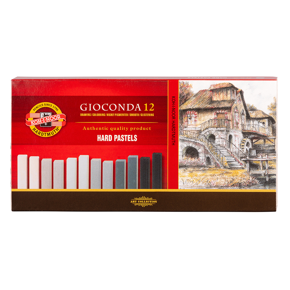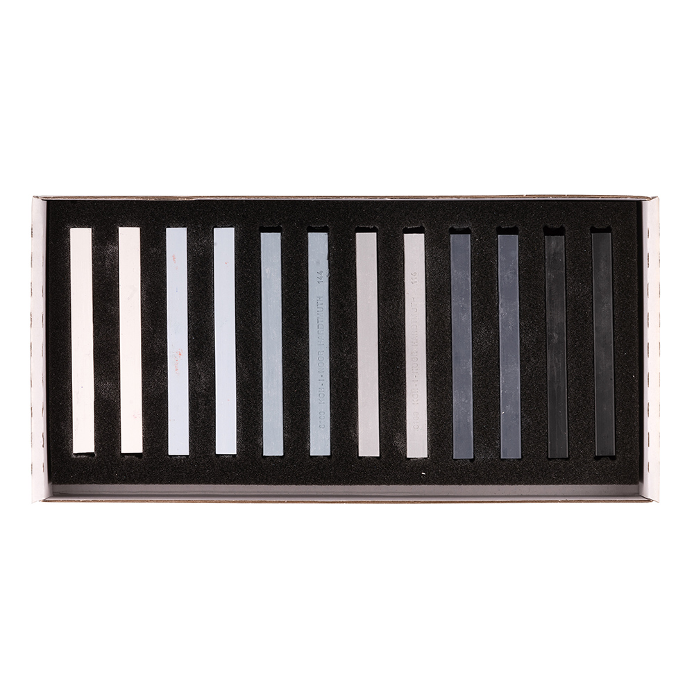 Set of 12 square hard artistic pastels, size 7 x 7 x 75 mm - GREY SERIES - packed in a cardboard box with ornamental clasp. Chalks are suitable for artistic and hobby drawing. Strongly pigmented with high light fastness and smooth track.