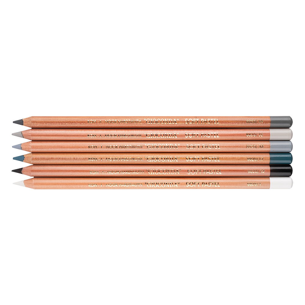 The Art set of six soft pastels in pencil. The 4.2 mm diameter soft pastel core containing high quality pigments is set in a round wooden casing. The thin profile of the soft chalk allows you to capture the finest details and draw precise lines. Perfect as a complement to classic, broad-based soft pastels. The range of shades in this set provides the ideal tones for grey scale drawing. The pastel trace can be blended with a blender or fingertips. We recommend stabilising the drawing with a fixative to prolong the life of the drawing and maintain colour stability.