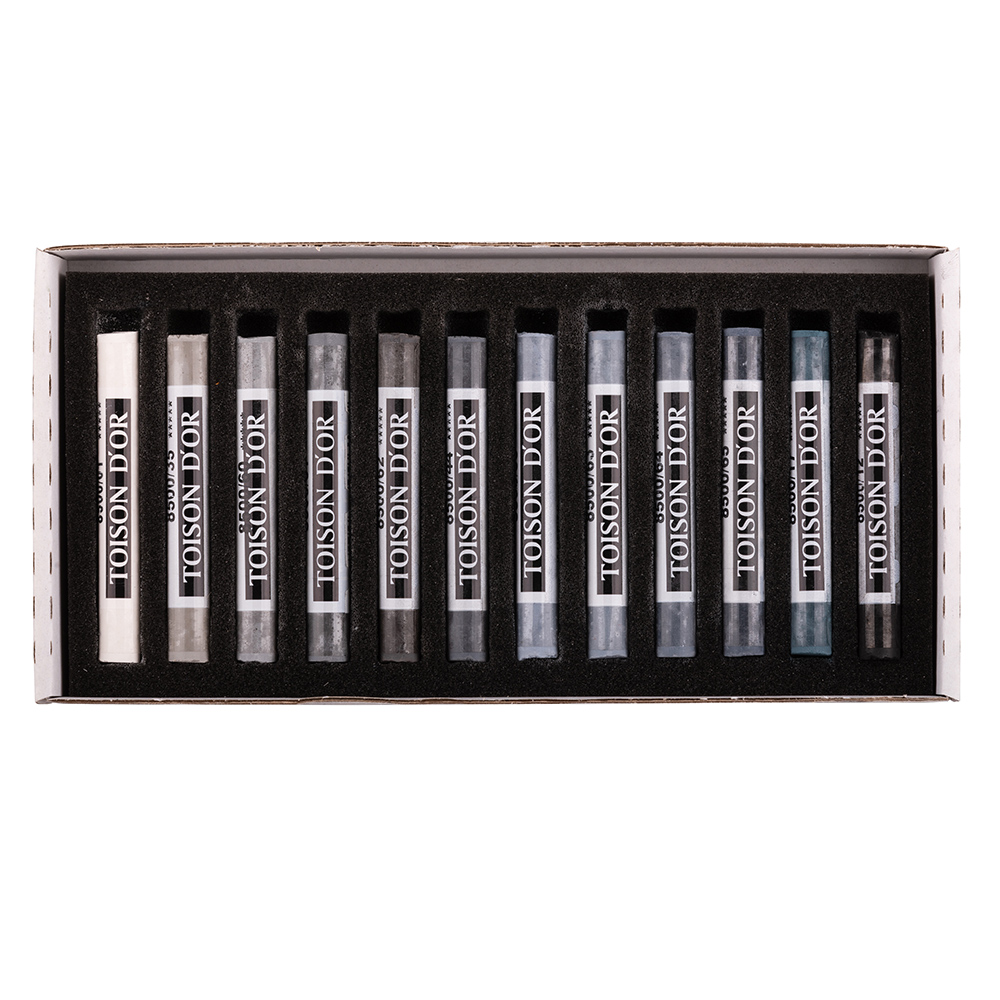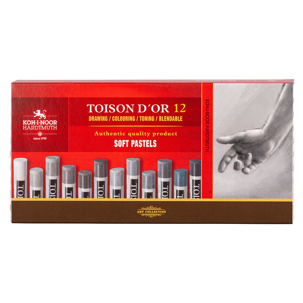 Set of 12 powdery grey pastels with a wrap, diameter of 10 mm and length of 75 mm. They are particularly suitable for black and white drawings. When drawing, it is possible to use a pastel holder KOH-I-NOOR Versatil. Once finished, we recommend to stabilize the drawing with a fixative.