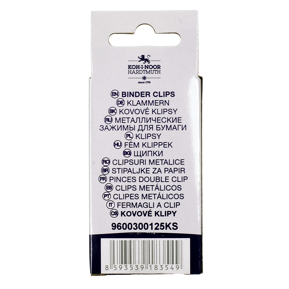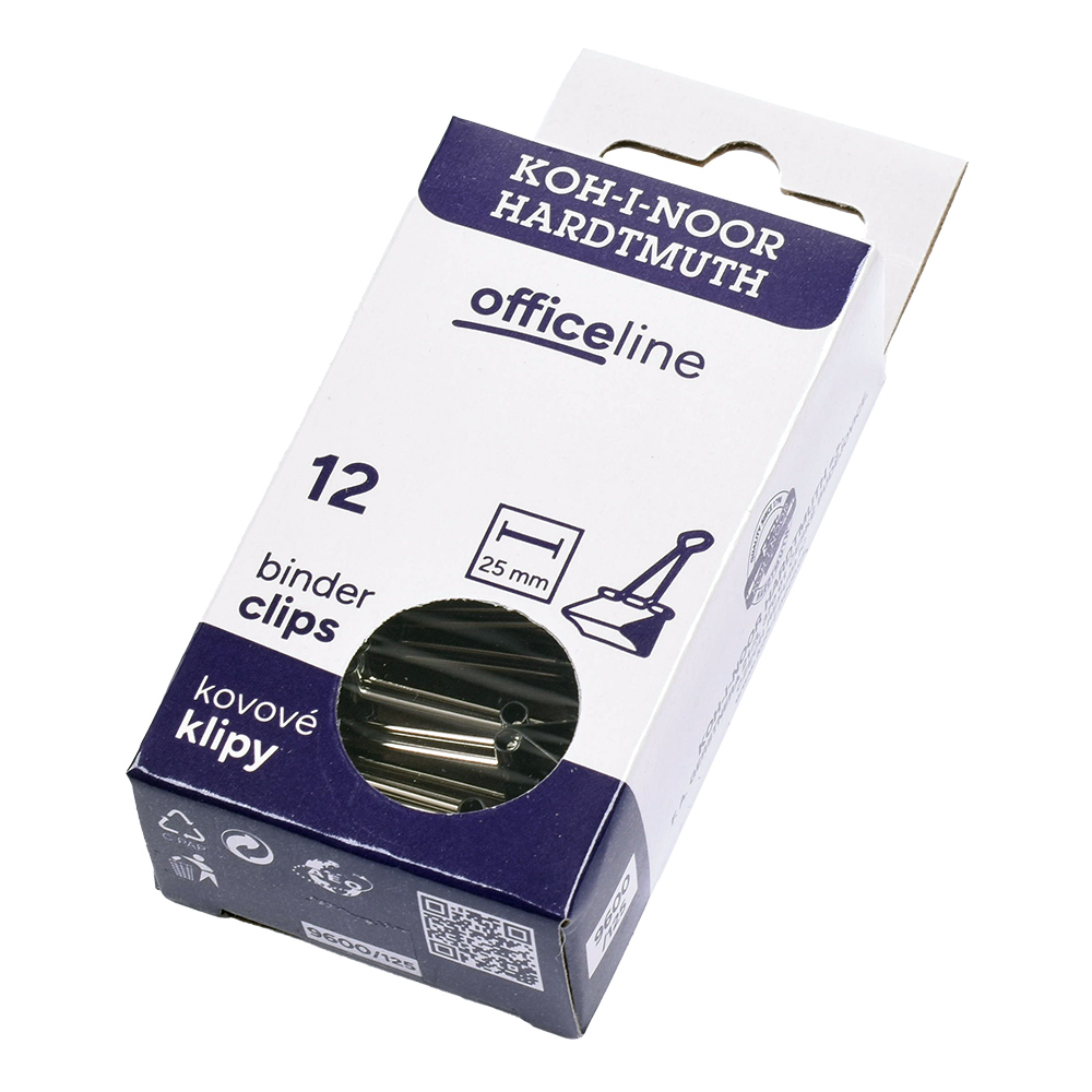 Metal clips 25 mm, height 45 mm, width at the widest point 25 mm. Pressing mechanics is black, pressing holders are nickel-coated. 12 clips in a paper box. The clips are used e.g. to clipping of multiple papers.