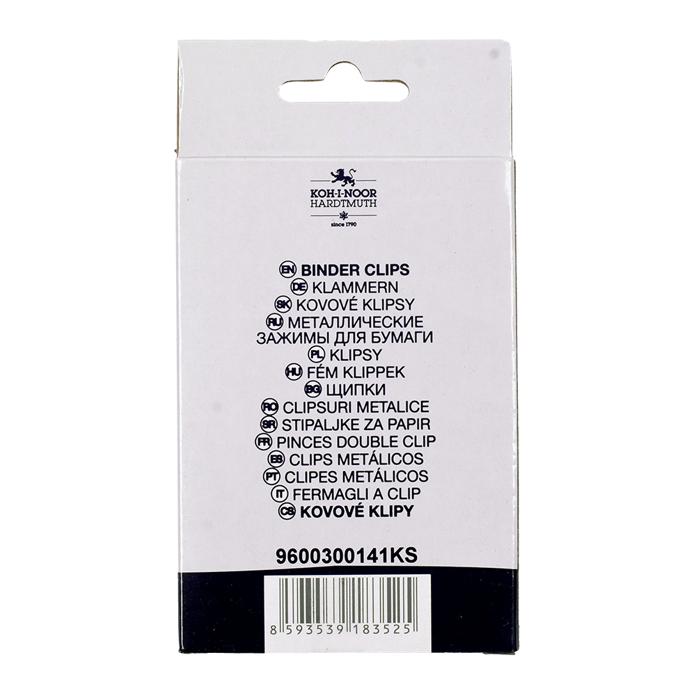 Metal clips 41 mm, height 70 mm, width at the widest point 41 mm. Pressing mechanics is black, pressing holders are nickel-coated. 12 clips in a paper box. The clips are used e.g. to clipping of multiple papers.