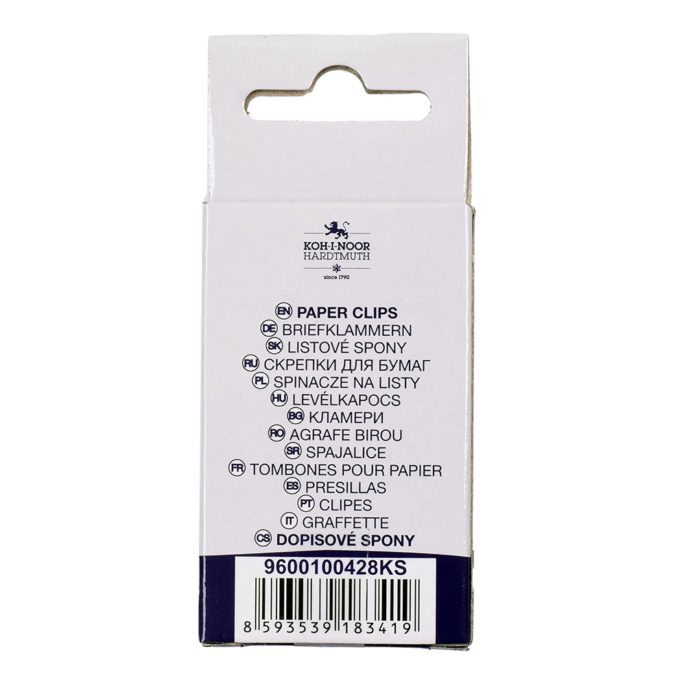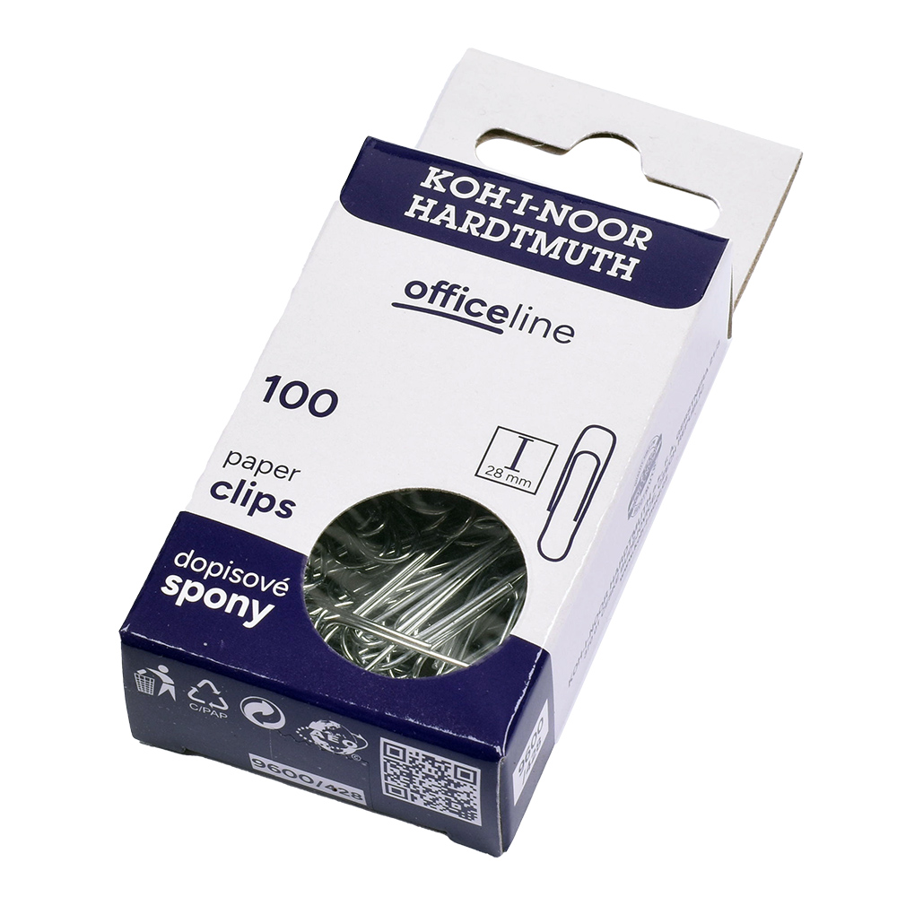 Paper clips 28 mm, wire diameter 1,60 mm, length 28 mm, width 6 mm. Zinc-coated wire. 150 clips stored in the cardboard box. The clips are used e.g. to clipping of multiple papers.