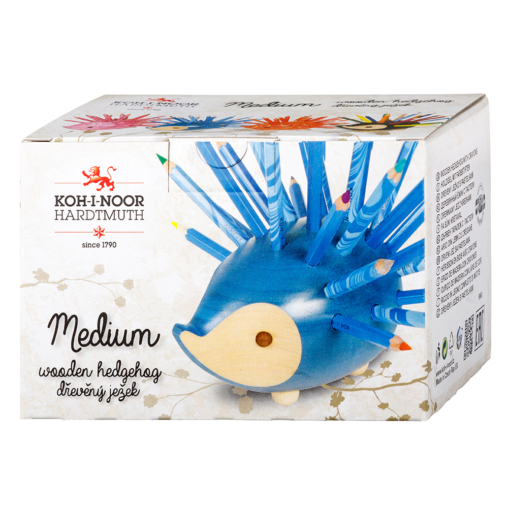 small wooden hedgehog with pencils pearly gold
