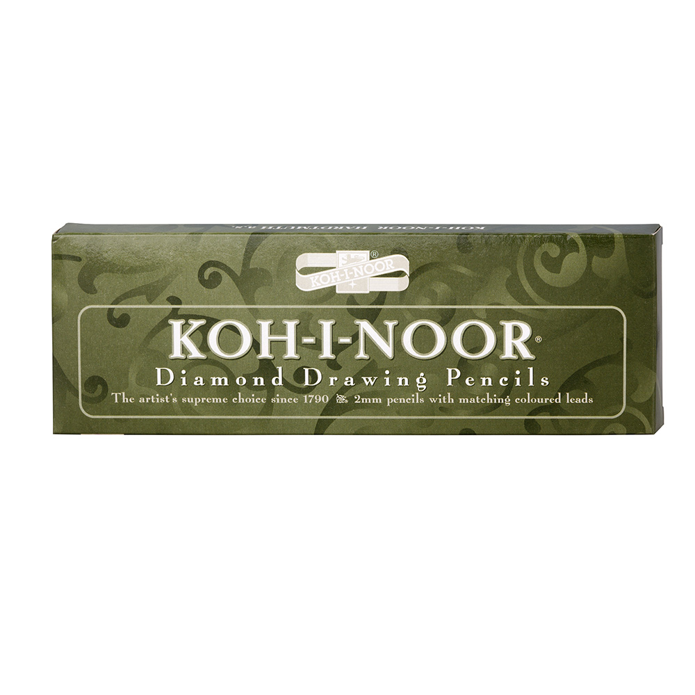 A set of mechanical propelling pencils without a clip in six colours with corresponding colour pastel leads of diameter 2 mm - colour pencils, yellow, green, blue, red, black, and brown + eraser for office use - office line. The lead is moved by pressing the sharpener knob in leaned pencil position, which opens the clamp and the lead is slid out as needed. The leads can be sharpened and the sharpener is located in the knob of the pencil. Metal envelope of the pencil, hexagonal OK7, varnished, metal mechanical parts. Packed in a metal sheet box with ornamental label on the lid; the pencils and eraser are stored in shaped insert. The metal sheet box is inserted in a paper box in design identical to the ornamental label on the lid of the metal sheet box.
