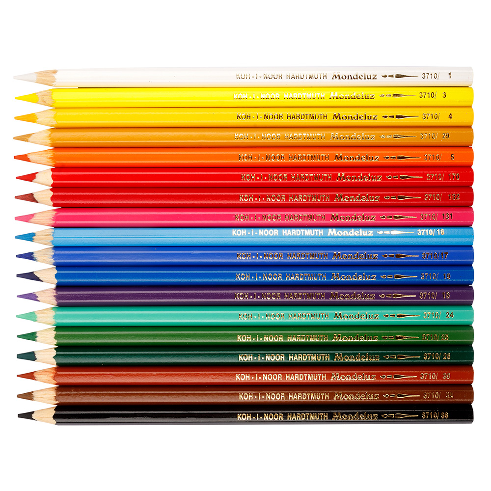 Set of 18 WATERCOLOUR coloured pencils in a case. Crayons are hexagonal OK - 7 mm, lead with a diameter of 3,8 mm. They are characterized by rich mark and can be further modified with water by using a brush or sponge. Suitable for artistic and hobby drawing.