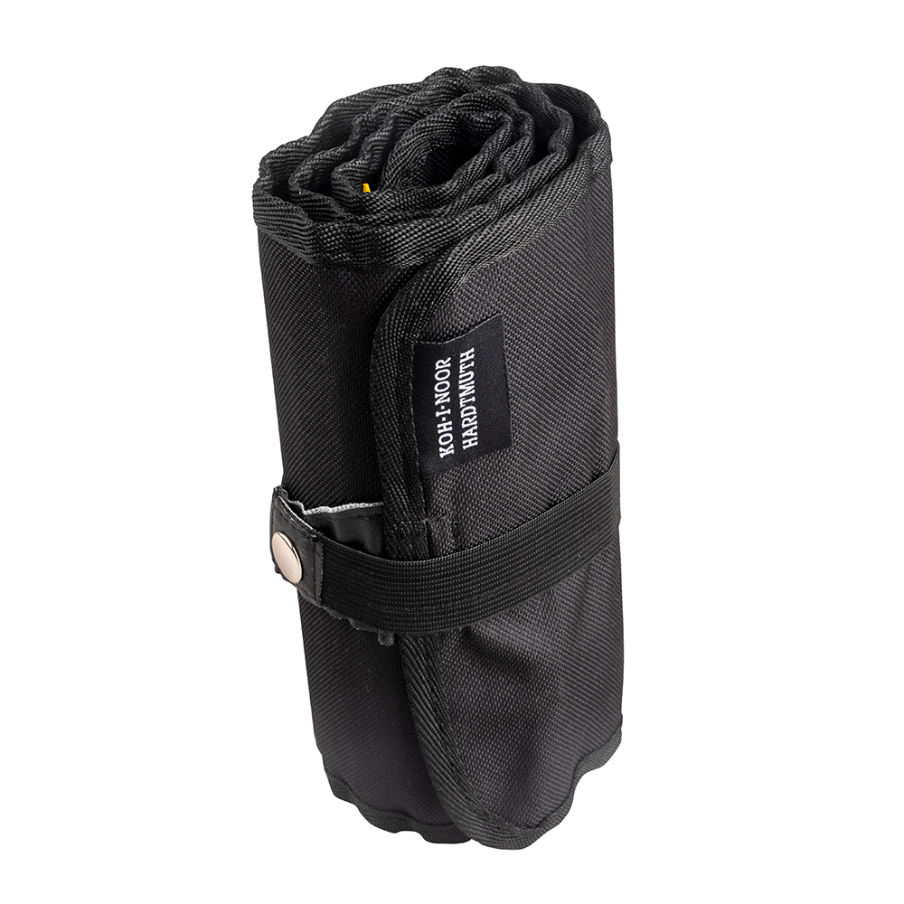 Modern scroll-pencil case. Contains set of excellent coloured pencils POLYCOLOR in 72 shades. The pencil case has black colour. The set is supplemented with a sharpener and eraser. This set is perfect for travelling or for school. Coloured pencils are well protected against damage.
