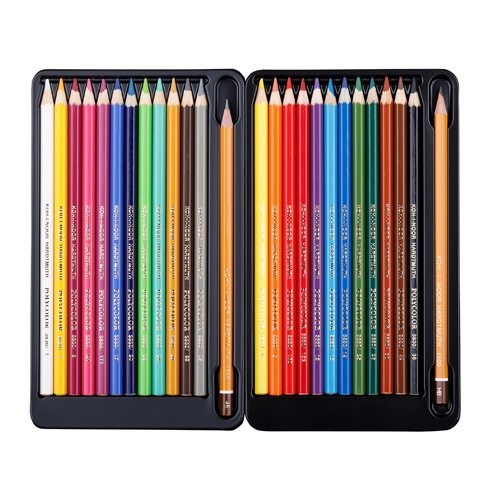 Set of artistic coloured pencils. These pencils have high-quality lead with a diameter of 3,8 mm, with excellent writing properties and brilliant shades. The set includes high quality sharpener and 2 graphite pencils 1500. It is suitable for artists, for hobby and common drawing.