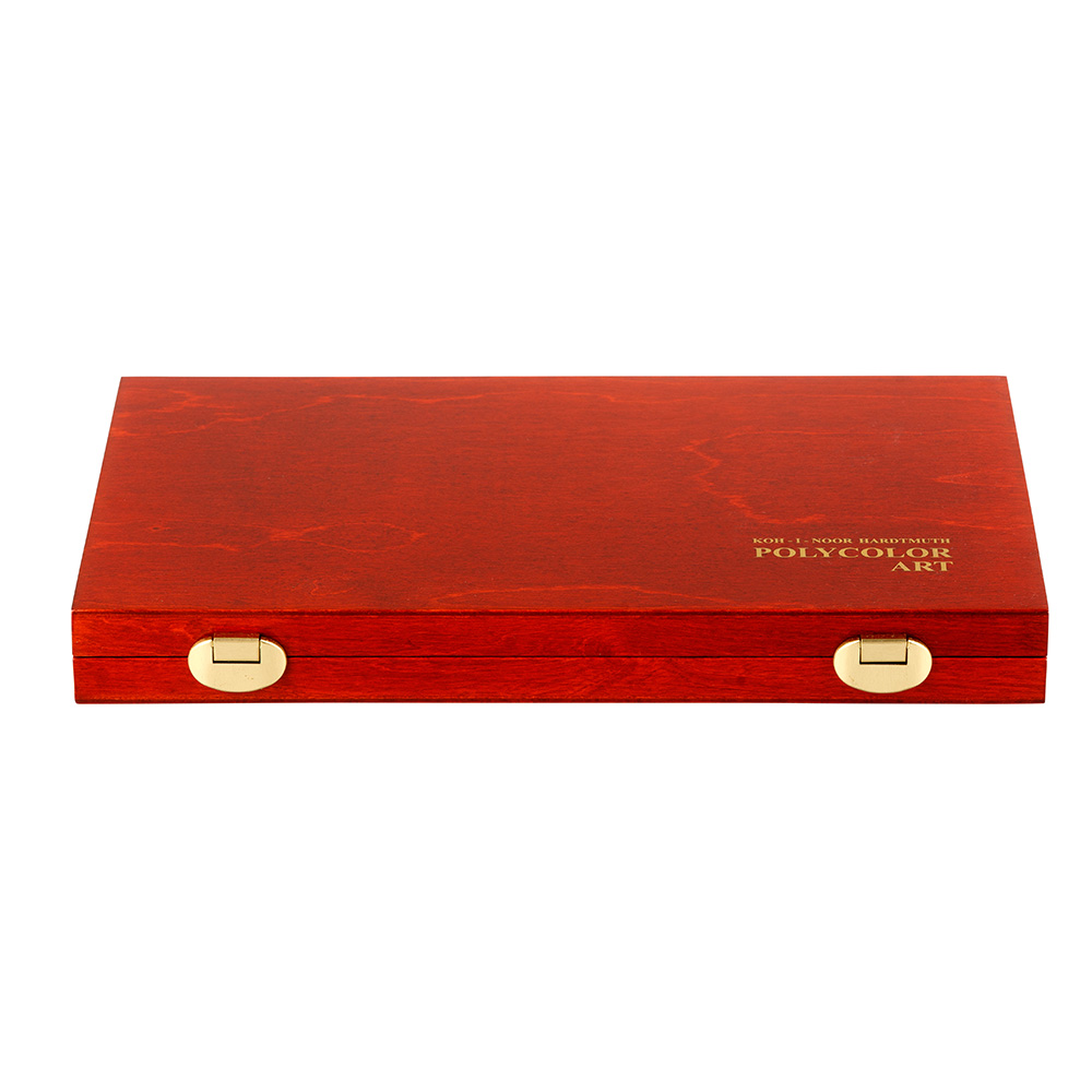 Set of 36 pieces of top quality coloured pencils with heavily pigmented core with a diameter of 3,8 mm in a wooden box. The set includes two graphite pencils. Pencils have excellent surface finish, lacquered ending and gold labelling. They are characterized by rich mark and can be further modified by blending. Suitable for artistic and hobby drawing.