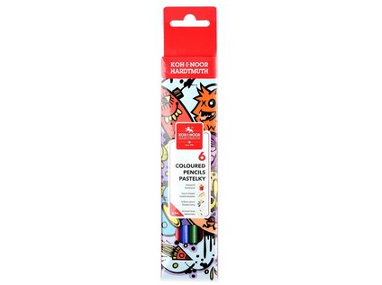 Set of hexagonal coloured pencils. Pencils are in a wooden envelope, the box contains 6 pieces packed into a cardboard puzzle. They are perfect for drawing on paper and are suitable for both school activities and universal usage.
