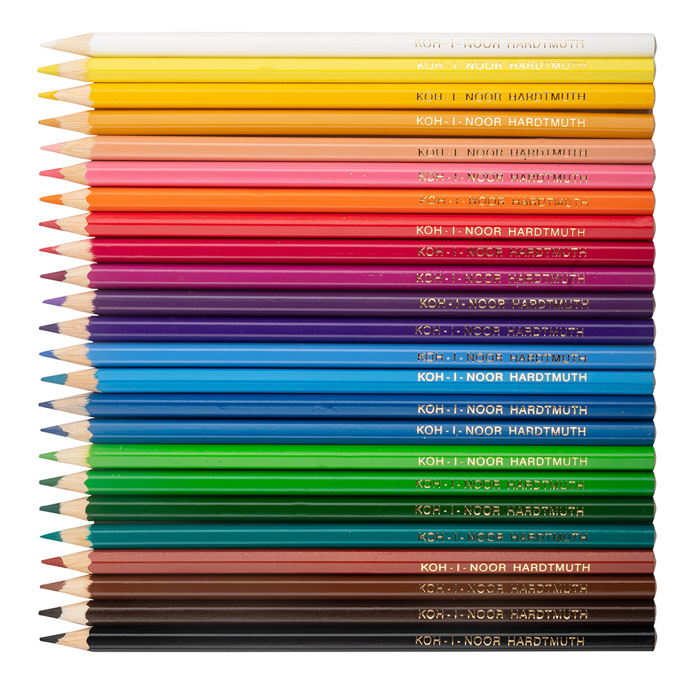Set of hexagonal coloured pencils. Pencils are in a wooden envelope, the box contains 24 shades packed into a case. Excellent for drawing on paper, the pencils leave an intense mark. They are suitable for both school activities and universal usage.