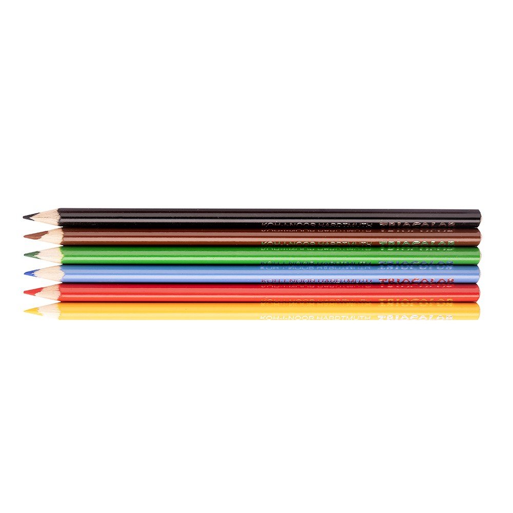 Triangular coloured pencils in wooden envelope. 6 colours packed into a cardboard box. Ergonomic triangular shape allows optimum holding and guiding of the pencil. They are suitable for both school and pre school children. These pens are becoming more and more popular.