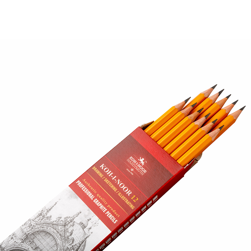 Traditional yellow hexagonal graphite pencils in wooden cedar envelope. The graphite lead is manufactured in 20 different hardness classes according to applicable use. The classes are exactly observed. The pencils are intended for technicians, graphic designers, and artists as well.