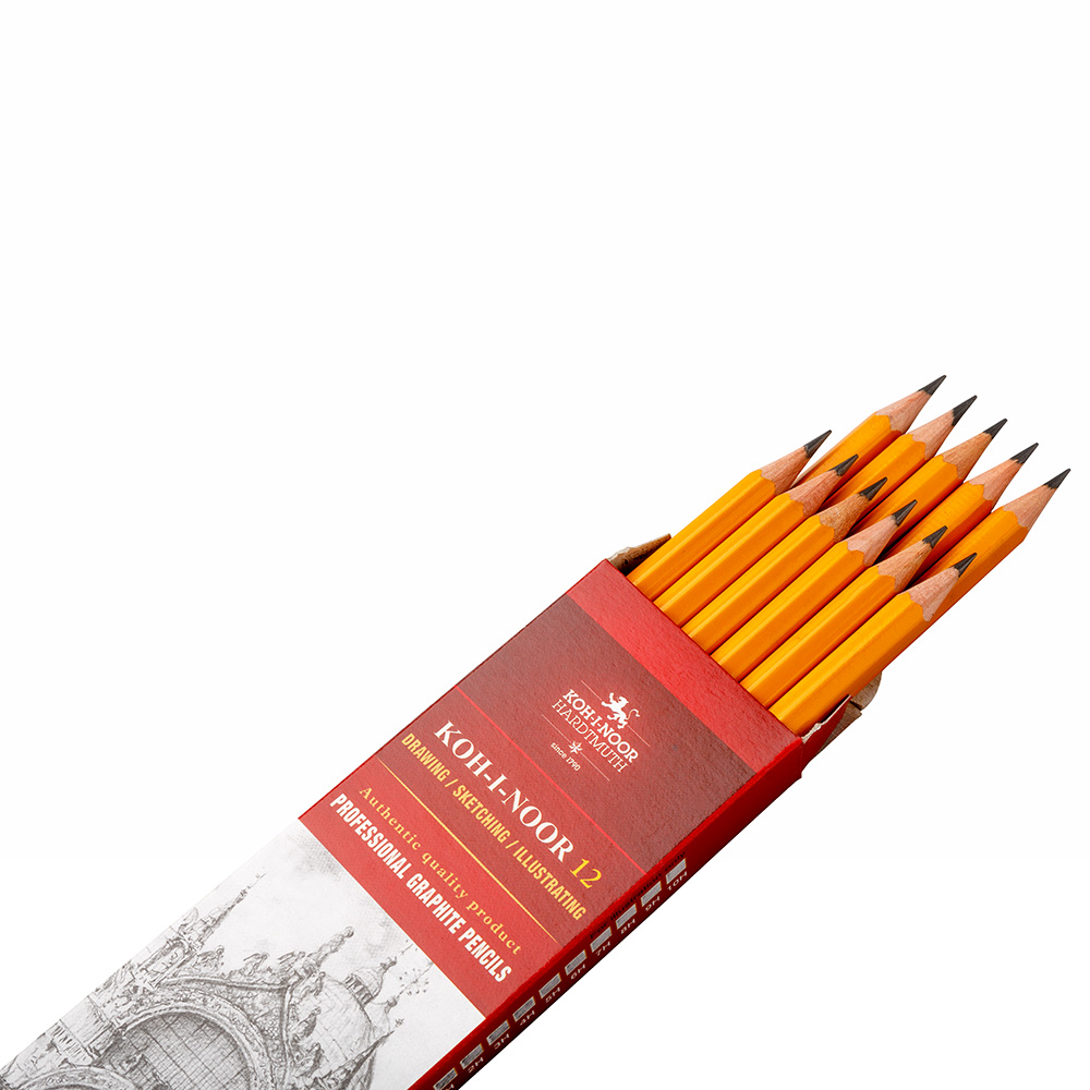 Traditional yellow hexagonal graphite pencils in wooden cedar envelope. The graphite lead is manufactured in 20 different hardness classes according to applicable use. The classes are exactly observed. The pencils are intended for technicians, graphic designers, and artists as well.