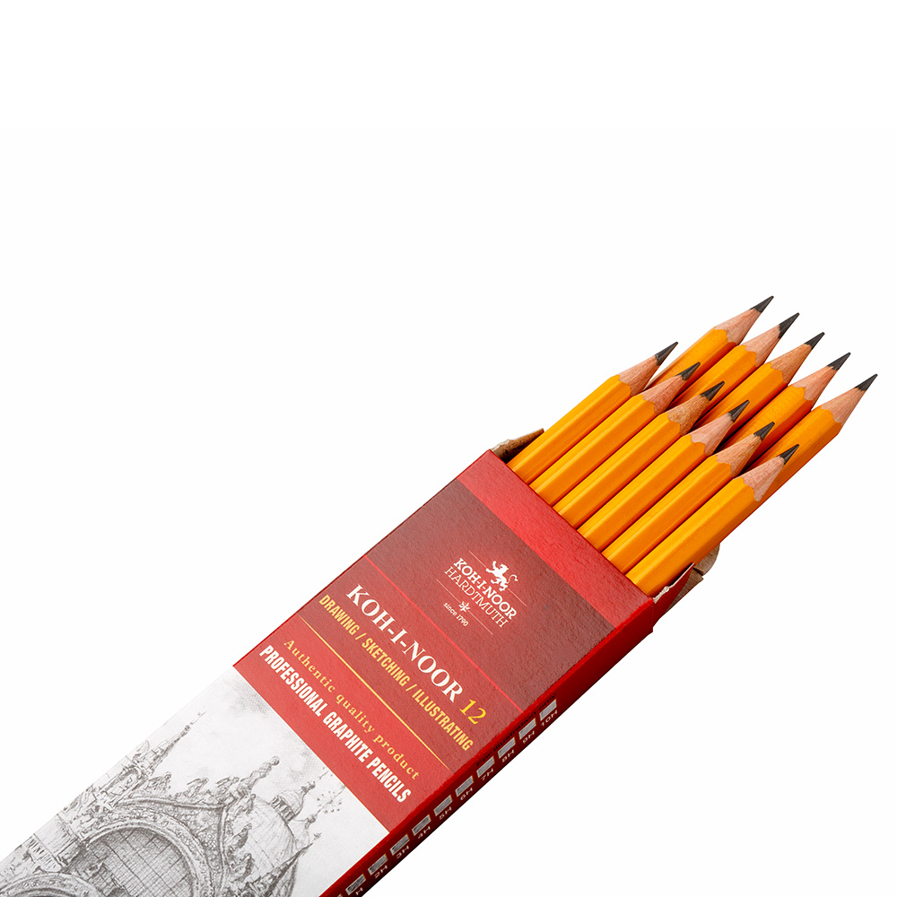 Traditional yellow hexagonal graphite pencils in wooden cedar envelope. The graphite lead is manufactured in 20 different hardness classes according to applicable use. The classes are exactly observed. The pencils are intended for technicians, graphic designers, and artists as well.
