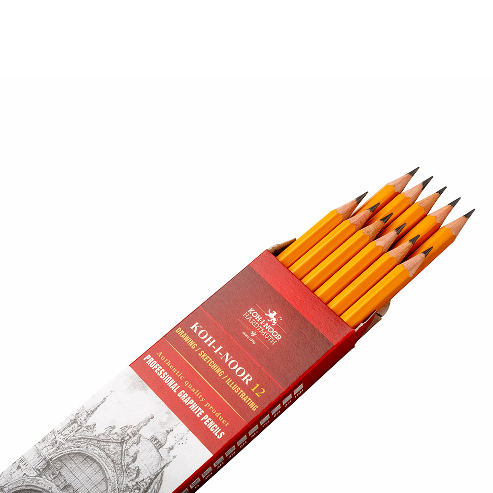 Traditional yellow hexagonal graphite pencils in wooden cedar envelope. The graphite lead is manufactured in 20 different hardness classes according to applicable use. The classes are exactly observed. The pencils are intended for technicians, graphic designers, and artists as well.