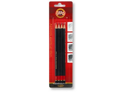 A set of graphite pencils 1935. The hexagonal graphite pencils in wooden envelope, in black design. Graphite lead in 4 classes of hardness, packaging of 4 pcs mix of classes in a blister pack. The pencils are used for graphic designers, artists as well as school general use.