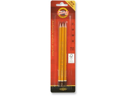 A set of yellow graphite pencils 1580 - 3 pcs of single class pencils in a blister pack. Triangle graphite pencils in wooden envelope from certified FSC 100% wood. The graphite lead in the class of hardness H. The classes are exactly observed. Ergonomic triangle shape permits optimum grip and guiding of the pencil. permits optimum grip and guiding of the pencil. Intended not only for pre-school and school kids but also for graphic designers and artists.
