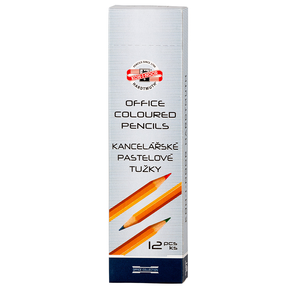 Hexagonal office colour pencil OK-7 mm, in wooden envelope, with blue lead. 12 pieces in a cardboard box. Intended for office and universal use.