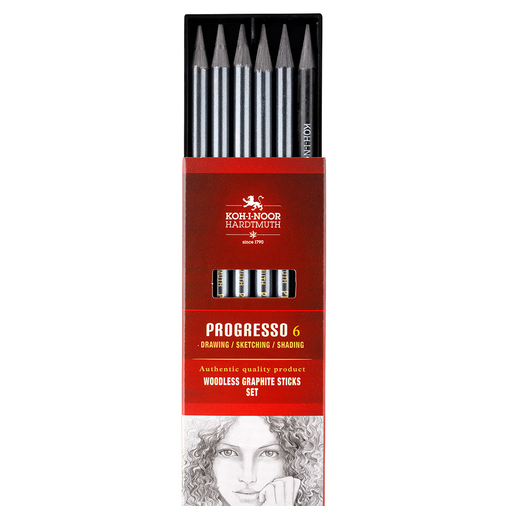 Combined set of four graphite lacquered pencil with strong mark. The set includes the following hardness degrees: 8911/ HB, 2B, 4B, 6B, 8B including the water soluble pencil Progresso 8912/4B. Perfect for artists, hobby and school drawing.