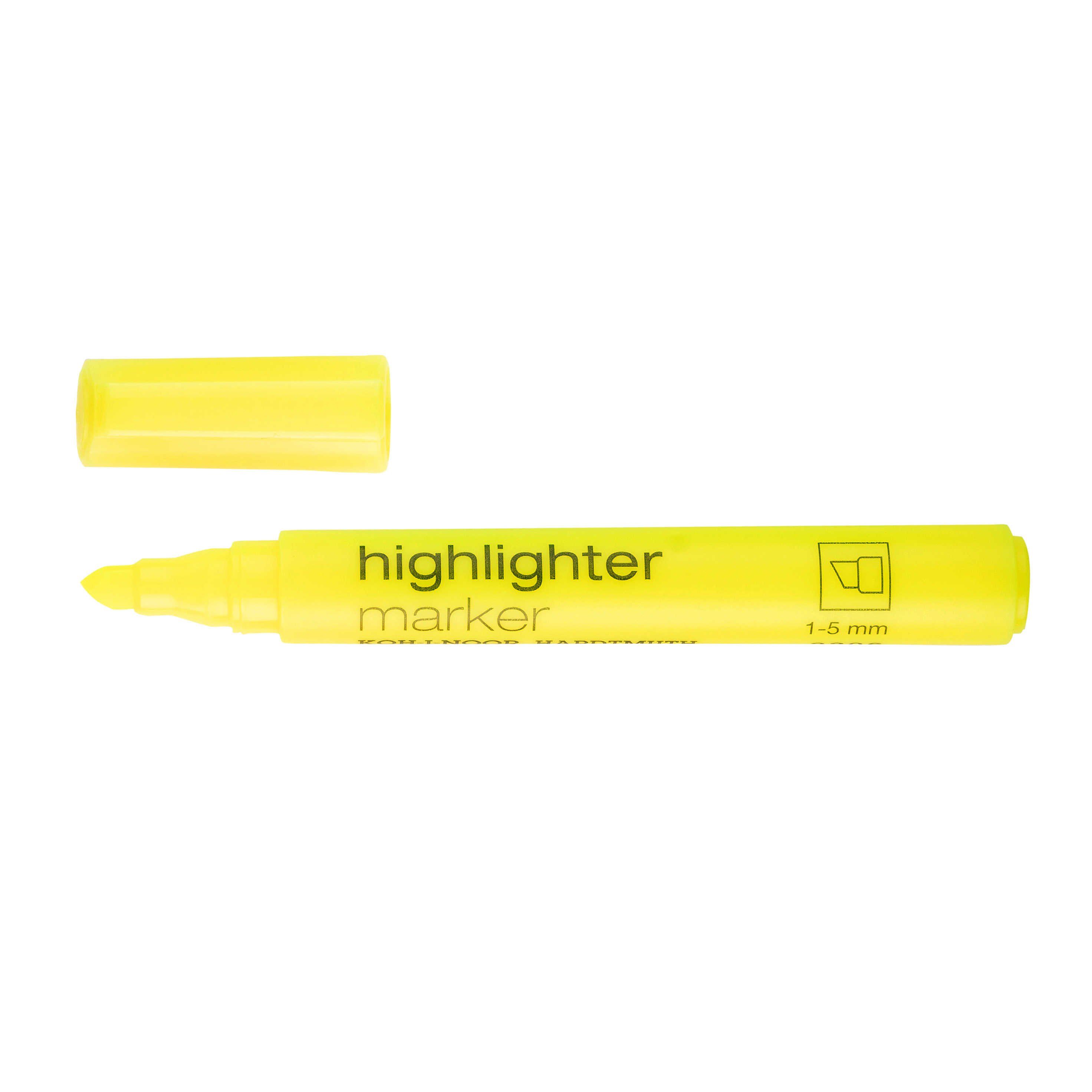 The highlighters filled with colourful pigment inks in 6 colours and manufactured from materials that provide resistance against drying for at least 3 years. Intended for highlighting of texts on all paper types. Push-in resistant wedge-shaped tips, 1-5 mm trace width, 400 m trace length. Packed in paper boxes, 10 pcs of each colour or in sets of 4 pieces in paper boxes.