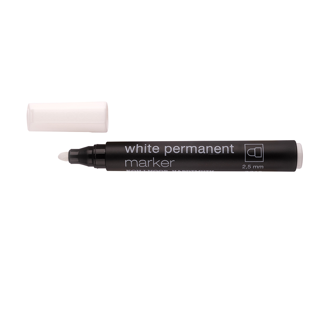 The markers filled with permanent white pigment water based ink of high covering power. Intended for marking of various types of papers and non-porous materials such as metals, plastics, glass, ceramics, cables, and more. Trace is partially resistant to abrasion and is light-fast. Round tip for 2,5 mm trace width, 400 m trace length. Minimum lifecycle 2 years. Long-term storage recommended in horizontal position and put with the tip down before use. They are packed in cardboard boxes in 10 pieces or 1 piece packed in PP bag.