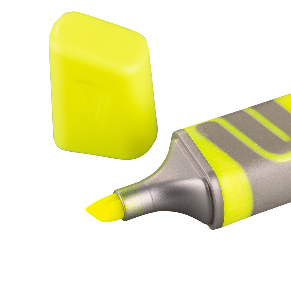The highlighters with sophisticated rubber grip made by bi-component injection technology that provides pleasant writing without hand being tired. Filled with colourful pigment inks in 6 colours and manufactured from materials that provide resistance against drying for at least 3 years. Intended for highlighting of texts on all paper types. Push-in resistant wedge-shaped tips, 1-5 mm trace width, 500 m trace length. Packed in paper boxes, 10 pcs of each colour, in sets of 2 or 4 pieces in plastic boxes. All materials used comply with EN-71 standards.