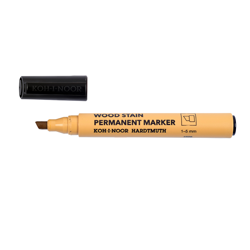 Fibre pens filled with alcohol-based inks in wood colours. The trace width is abrasion, water, and weather resistant, and light-fast. They are used for colouring and repairs of minor surfaces of wood, furniture, floors, and similar materials. If needed, the trace can be removed by alcohol from non-porous materials. Fitted with wedge-shaped tips of 5 mm in diameter with 1- 5 mm trace width and 400 m trace length. Packed in paper boxes, 10 pcs of each colour or in sets of 6 pieces.