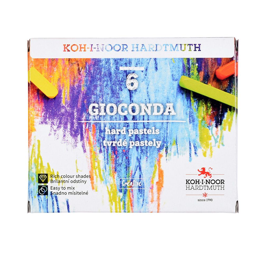 Set of 6 square hard artistic oil pastels, size 7 x 7 x 75 mm, packed in a cardboard box. Chalks are suitable for artistic and hobby drawing. Strongly pigmented with high light fastness and smooth mark. Enable to create wider lines and flat chalk drawings.